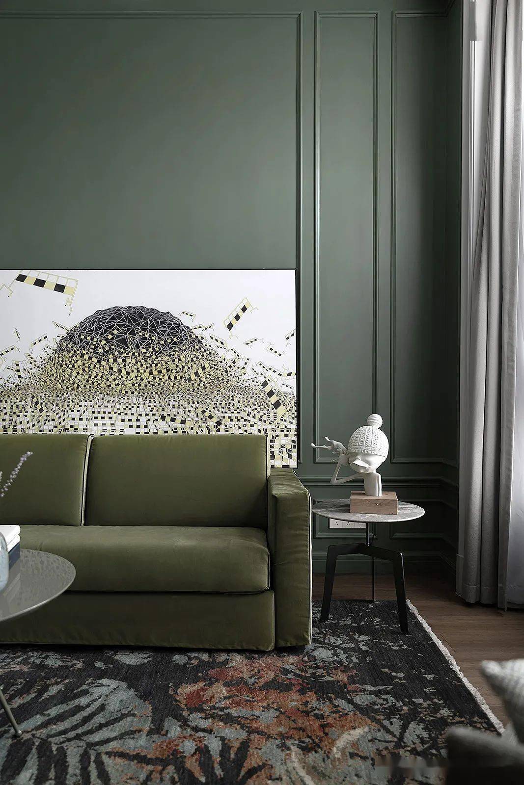 设计师降低色彩纯度与明度,带来一份岁月静好后的平静安然之感,刚好符合二楼是整个家休憩场所的氛围。晨起早安,睡前晚安,亲密的家庭关系也在不断滋长。