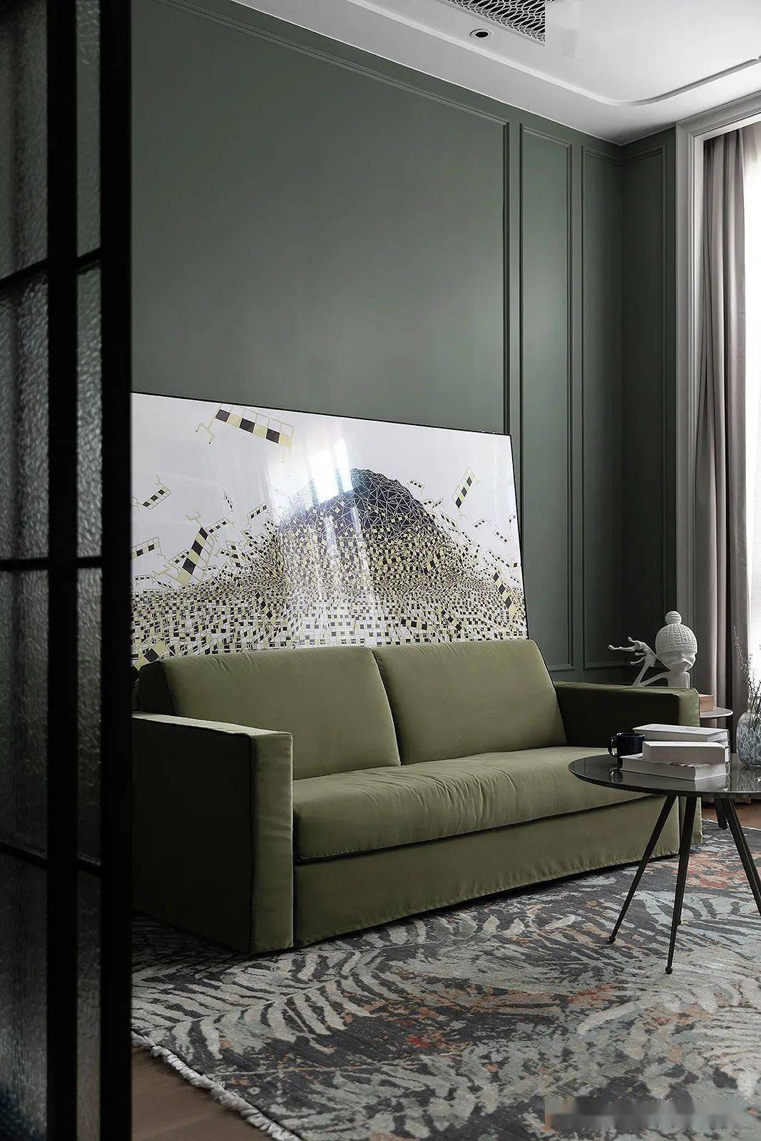 从家庭休闲区进入休息空间,淡淡的莫兰迪色系温柔包围,在这里,一切都是温暖而舒适的。