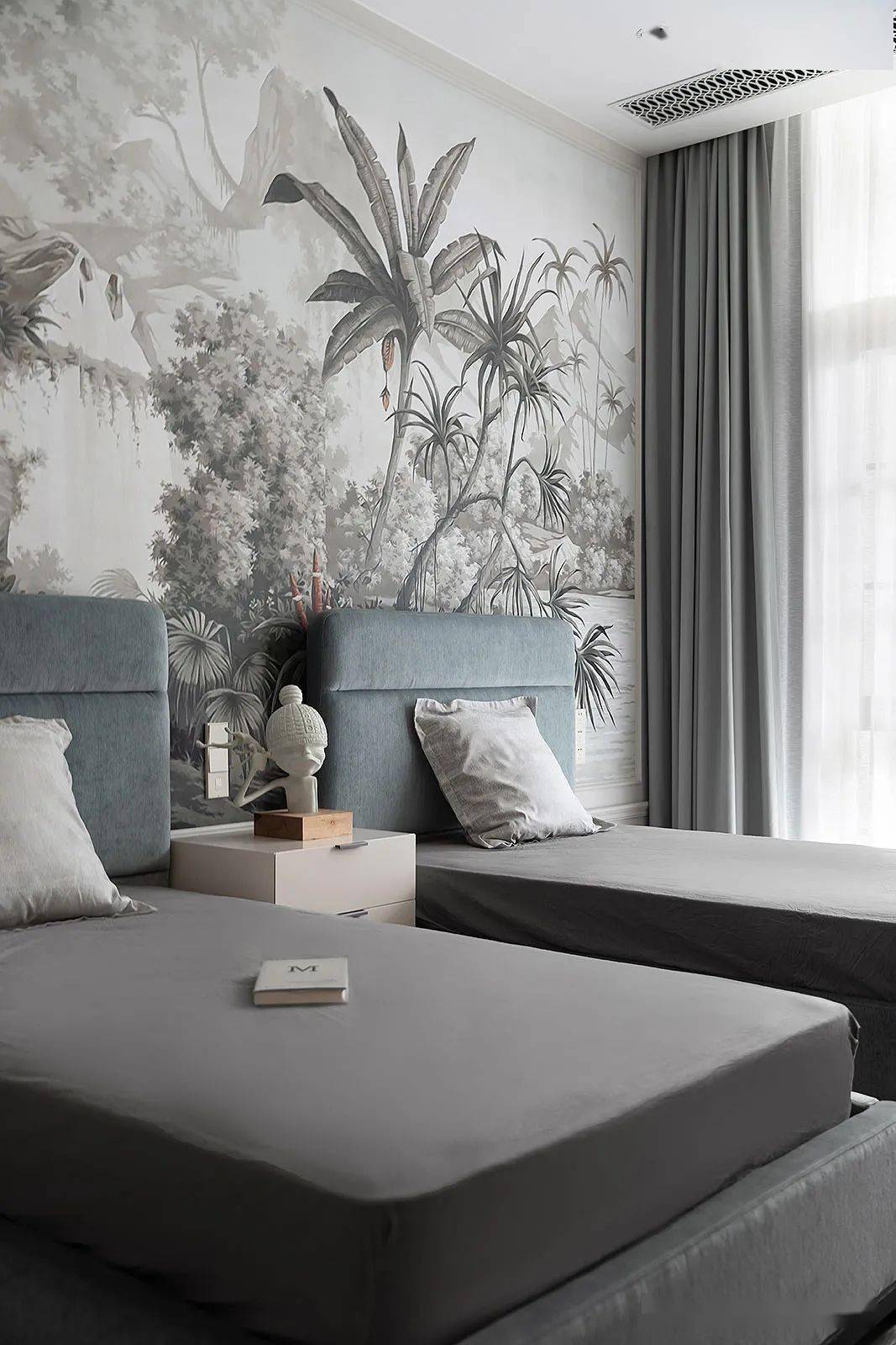 设计师降低色彩纯度与明度,带来一份岁月静好后的平静安然之感,刚好符合二楼是整个家休憩场所的氛围。晨起早安,睡前晚安,亲密的家庭关系也在不断滋长。